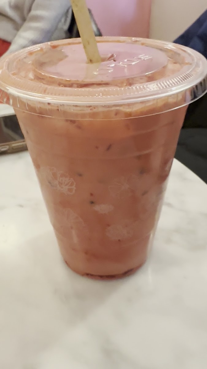 This cafe has a wonderful pink atmosphere and very tasty coffee!